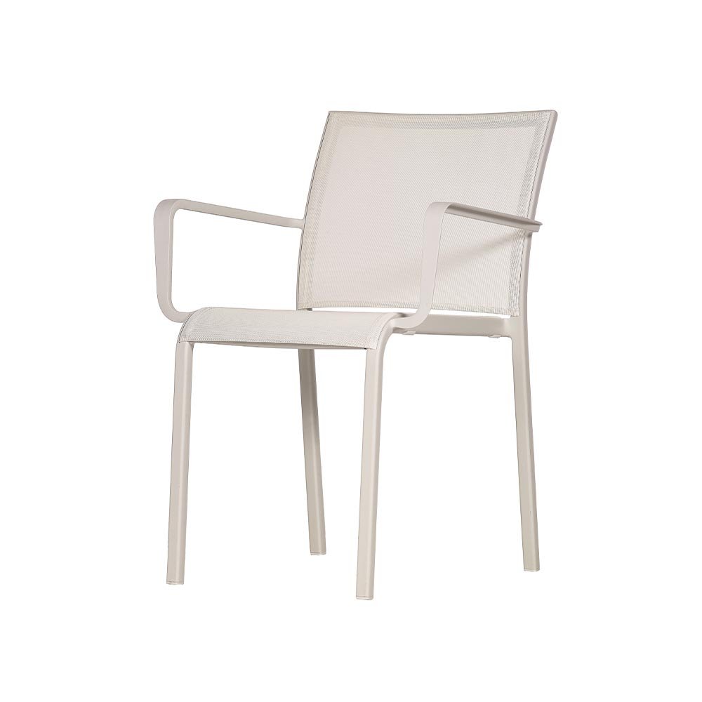 Стифиращо се кресло за външна и вътрешна употреба. Лакиран алуминий. Плат Phifertex®. Лесен за поддръжка, антибактериален, влагоустойчив. Неплъзгащи се капачки. Много лесен за почистване и дезинфекция. Продукт за обществена и домашна употреба.
